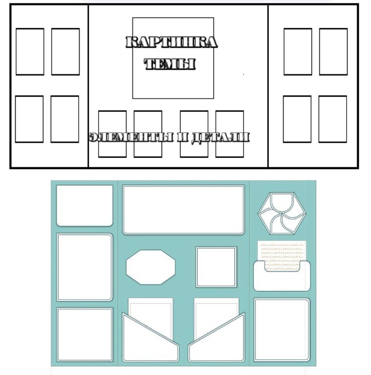 2. Нарисуйте макет, где будет место для основной картинки темы, и места для разнообразных кармашков.