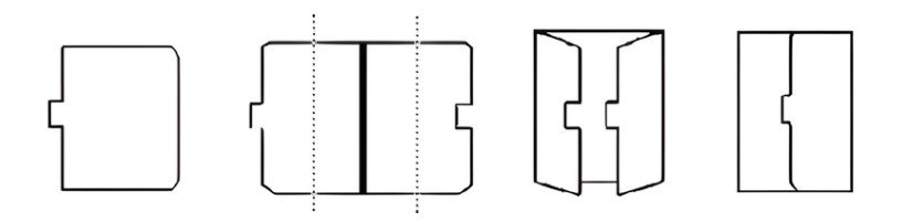 ►Согните каждую сторону пополам (у вас получится три части: широкая в центре и две узкие сбоку - дверцы);